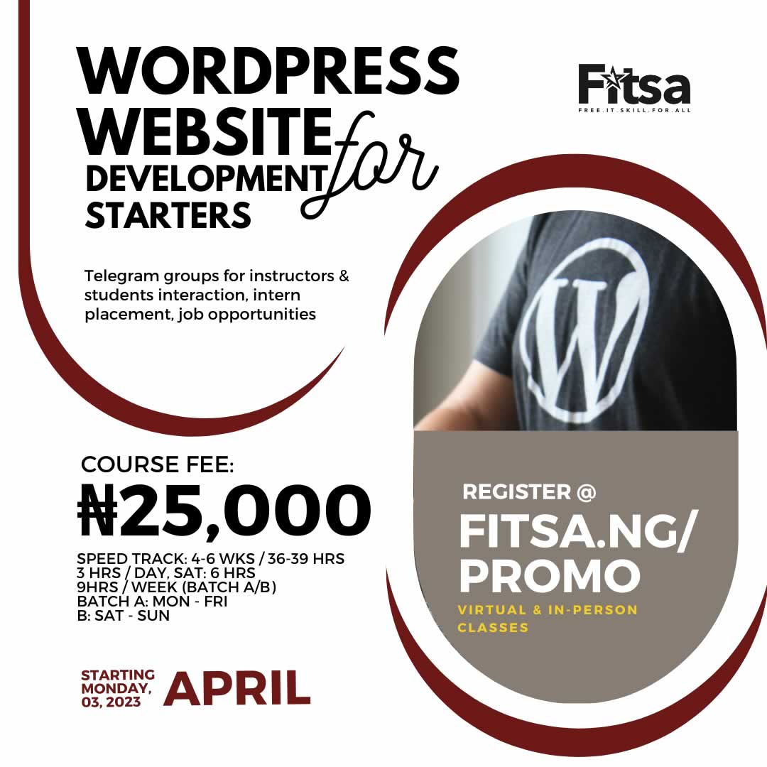 By the end of this course, students should have a good understanding of how to create, customize, and maintain a WordPress website. They should also be able to develop (WordPress) website from scratch and complete development then move to production phase (upload to a live web hosting server), create e-commerce website for product check-out, and be familiar with basic SEO and security practices for WordPress.